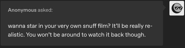 However, I also accept "disgusting bitch", "stupid faggot", "fucking freak", etc <3 it's not a sex thing I just think it's funnyNames of fictional characters I've stolen for myself: